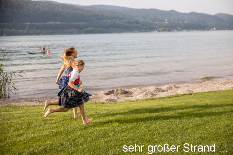 Der rund 2.000 m² große private Badestrand bietet ausreichend Raum zum Entspannen und ermöglicht es, die unterschiedlichen Stimmungen des Wörthersees zu jeder Tageszeit in vollen Zügen zu genießen.