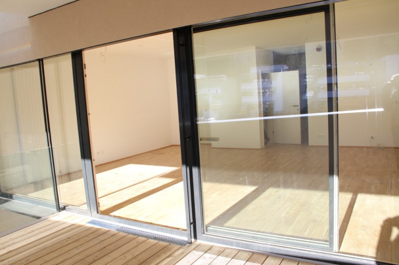 Bei den Wohnungsgrundrissen wurde großer Wert auf die Minimierung von Erschließungsflächen und die Maximierung von Wohn- und Lebensraum gelegt. Großzügige Verglasungen mit Schiebetüren schaffen ein fließendes Raumerlebnis.