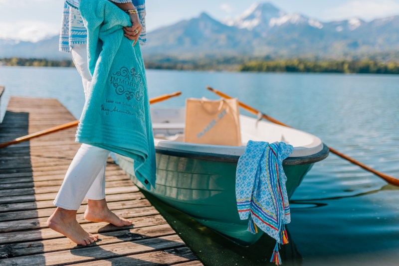 Das türkisblaue Wasser des Faaker Sees erwärmt sich bis zu 27° Celsius. Wer hier wohnt und den Urlaub verbringt, hat die Qual der Wahl: Berg, See oder mit Blick auf beides zuhause relaxen.