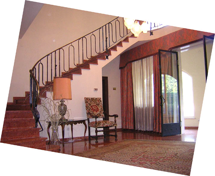 EG: Empfangsdiele ca. 40 m2 mit ca. 8 m Raumhöhe bis Decke über 1.OG., WC., Garderobe, Salon ca. 76 m2 mit Ausgang auf Süd- u. Panoramaterrasse von ca. 100 m2, Speisezimmer ca. 30 m2, Küche ca. 16 m2, Speisekammer, 2 Gästeappartements. Über geschwungene Marmortreppe wird das Obergeschoss erreicht.